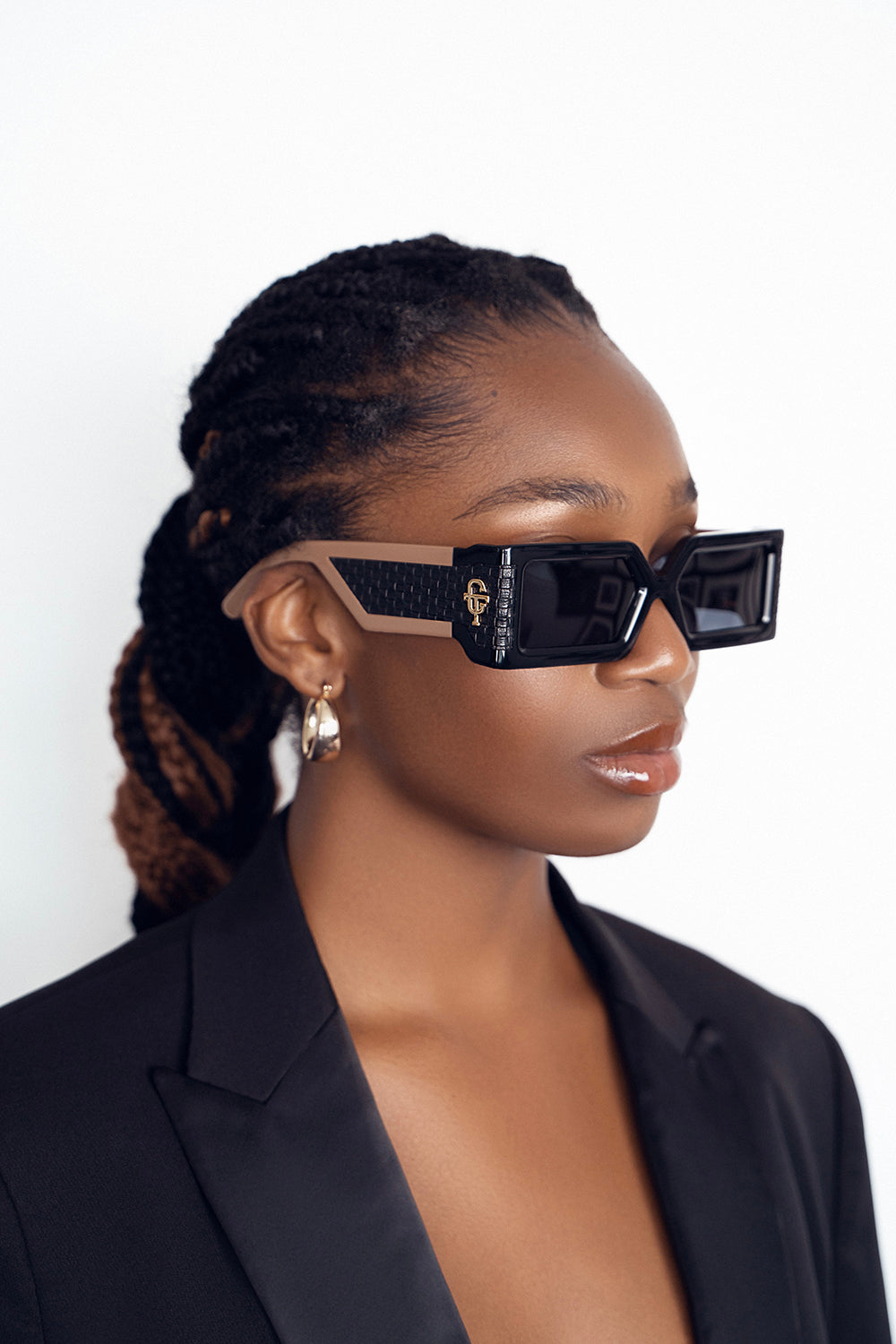 Introducing CHIEFTAIN’s first release: a bold and sculptural pair of sunglasses that blends modern luxury with cultural pride. Featuring an angular silhouette, custom woven texture, and signature gold CT monogram, this piece is a statement of heritage and craftsmanship. Designed for those who lead with style. This debut silhouette marks the beginning of CHIEFTAIN’s eyewear legacy.